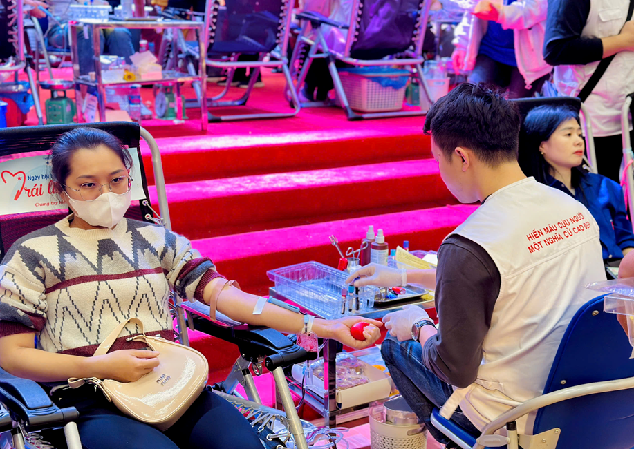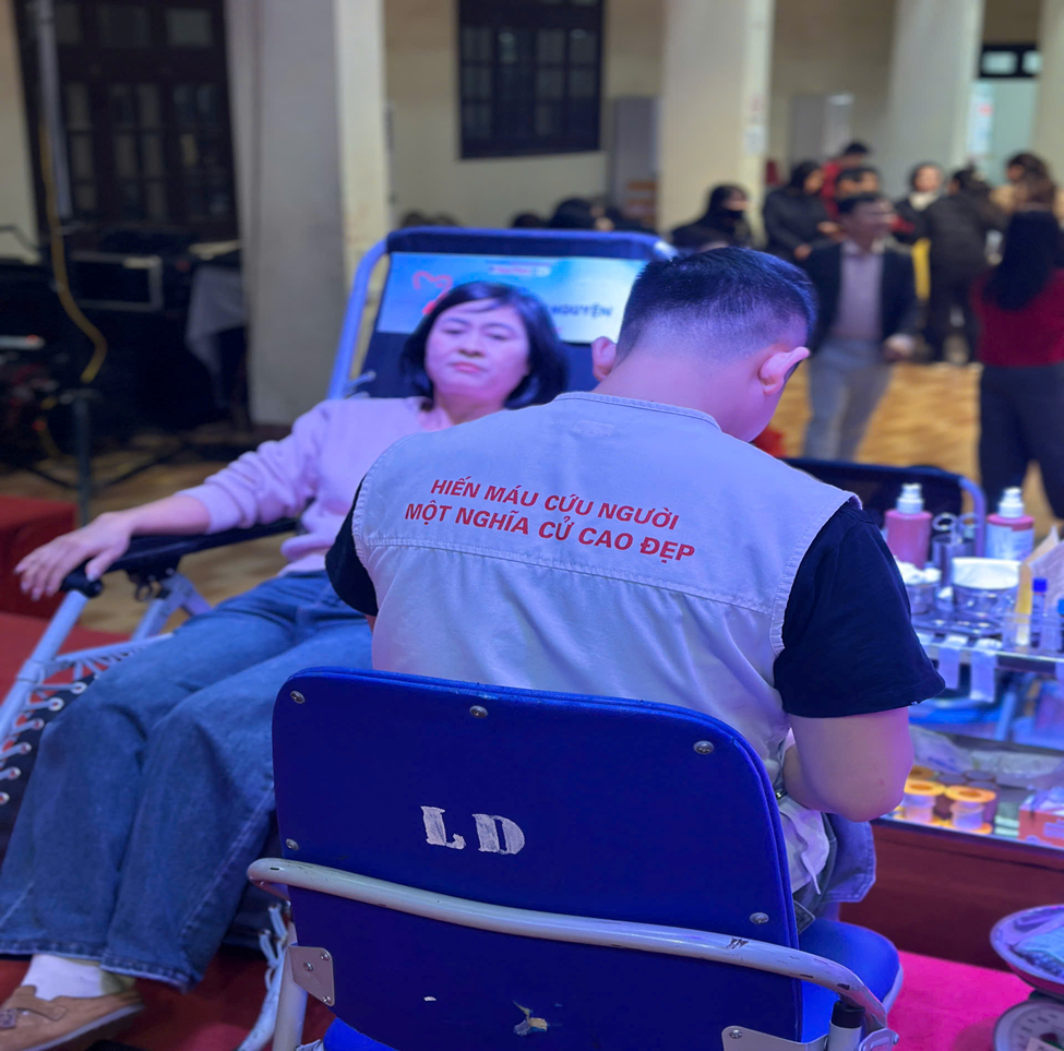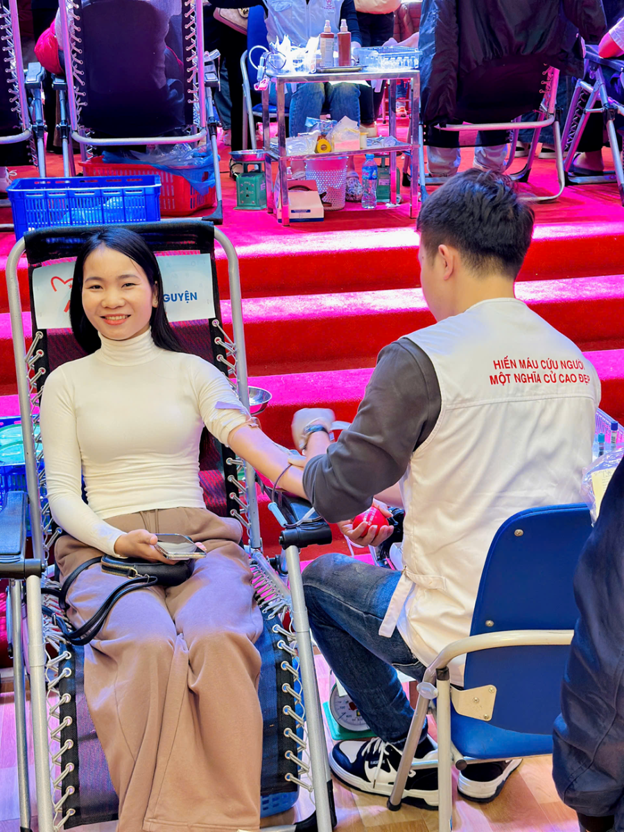 Hình ảnh cô: Hoàng Hồng Nhung đang tham gia hiến máu tình nguyên