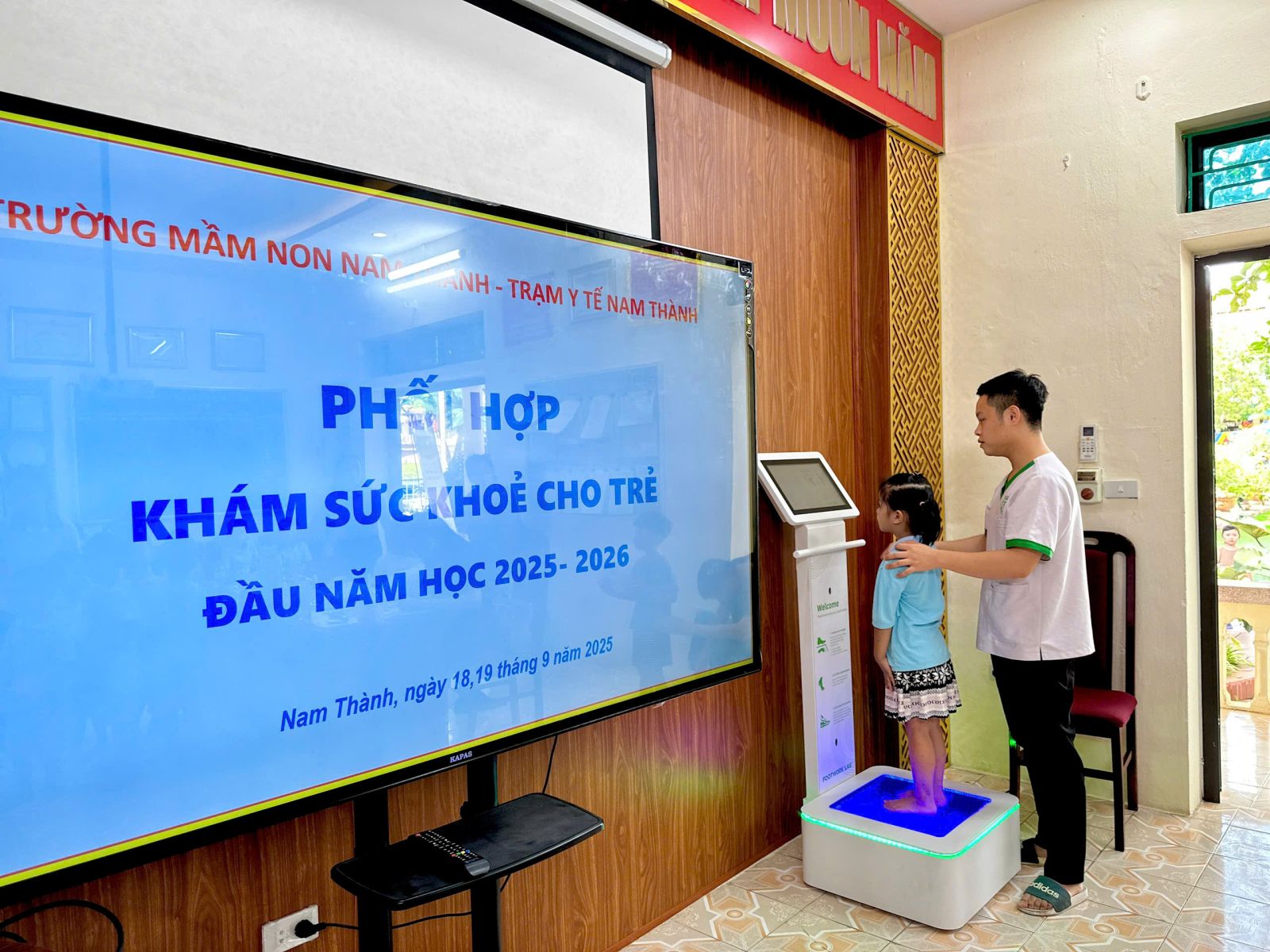 Trường Mầm non Nam Thành tổ chức khám sức khỏe năm học 2025-2026 cho học sinh với nội dung “Tầm soát cong vẹo cột sống và tật bàn chân bẹt và khám sức khỏe đầu năm học ” vào sáng ngày thứ năm 18/09/2025.